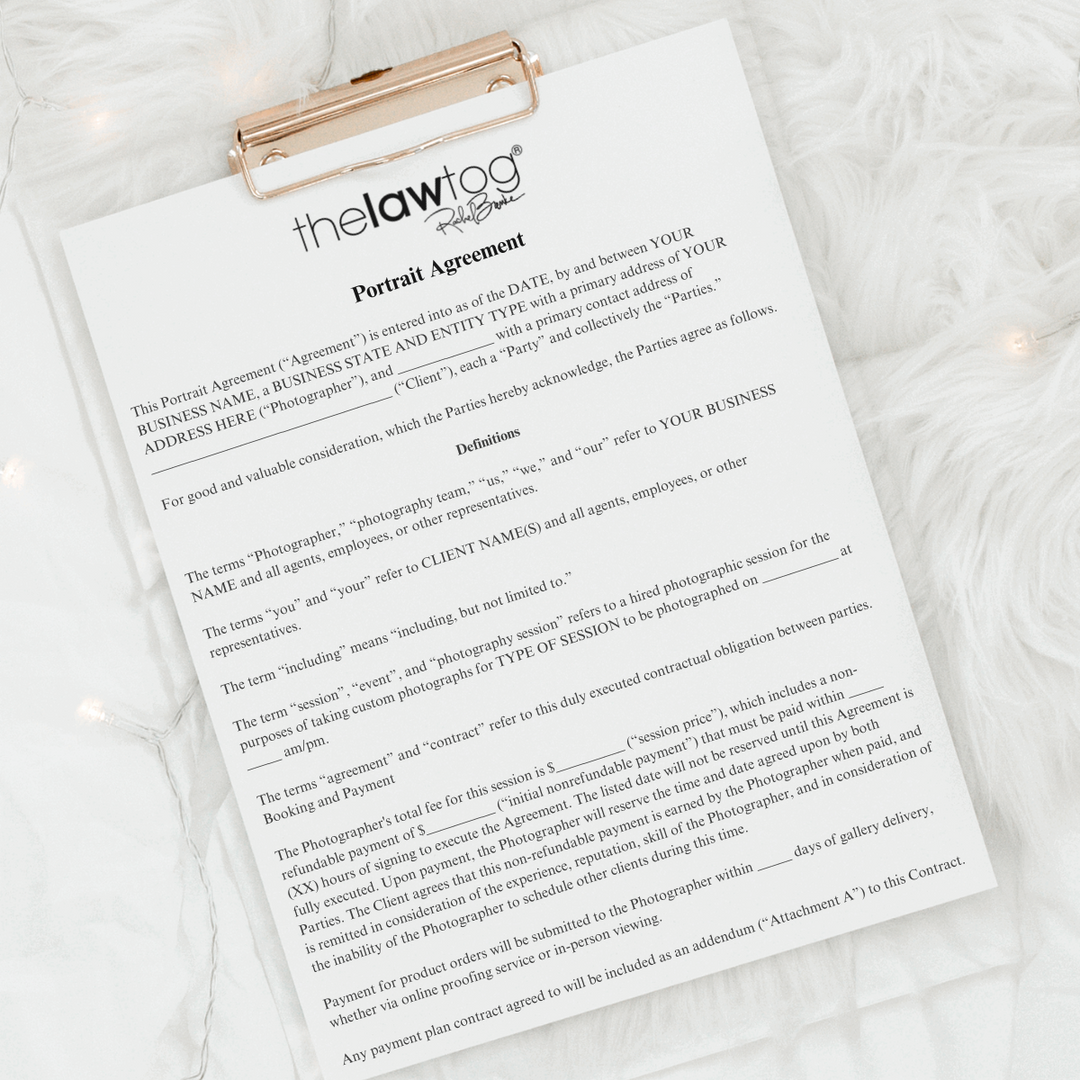 Note: This contract is not intended for use with associate photographers. If you're looking for a contract for associate photographers, you can find it in the Associate Photographer Bundle.